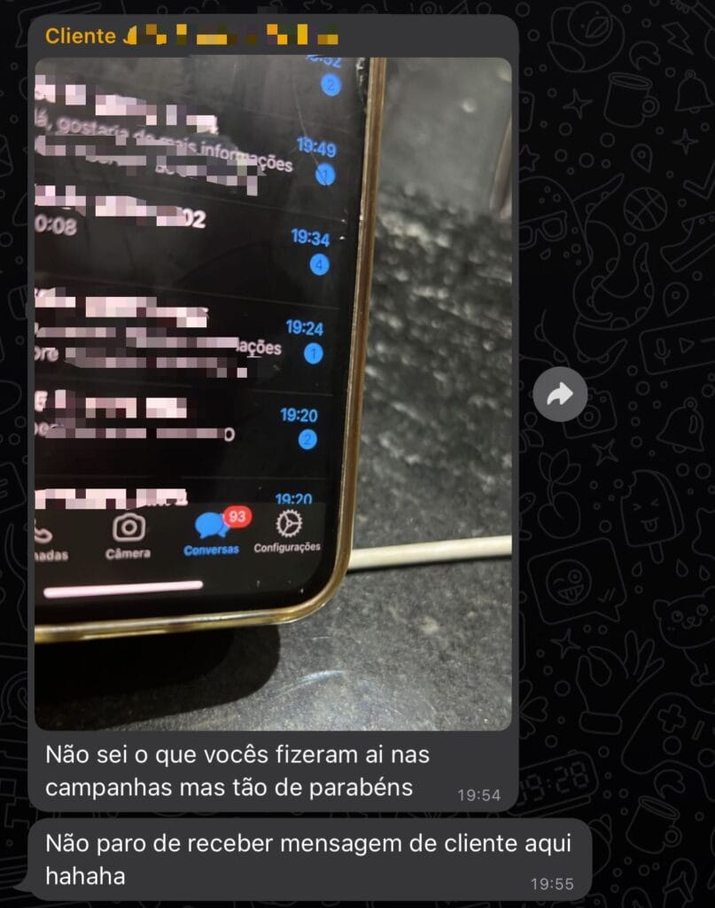 Cliente nos mandou essa foto, em sua primeira semana de campanha o Whatsapp já lotou de pessoas procurando seus serviços.